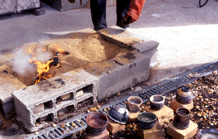We arrive just as Charles Hair is placing some of his students' work in the firepit. |