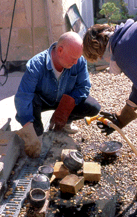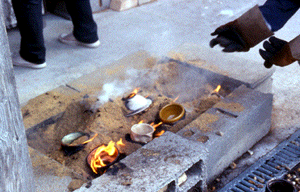 We arrive just as Charles Hair is placing some of his students' work in the firepit. |